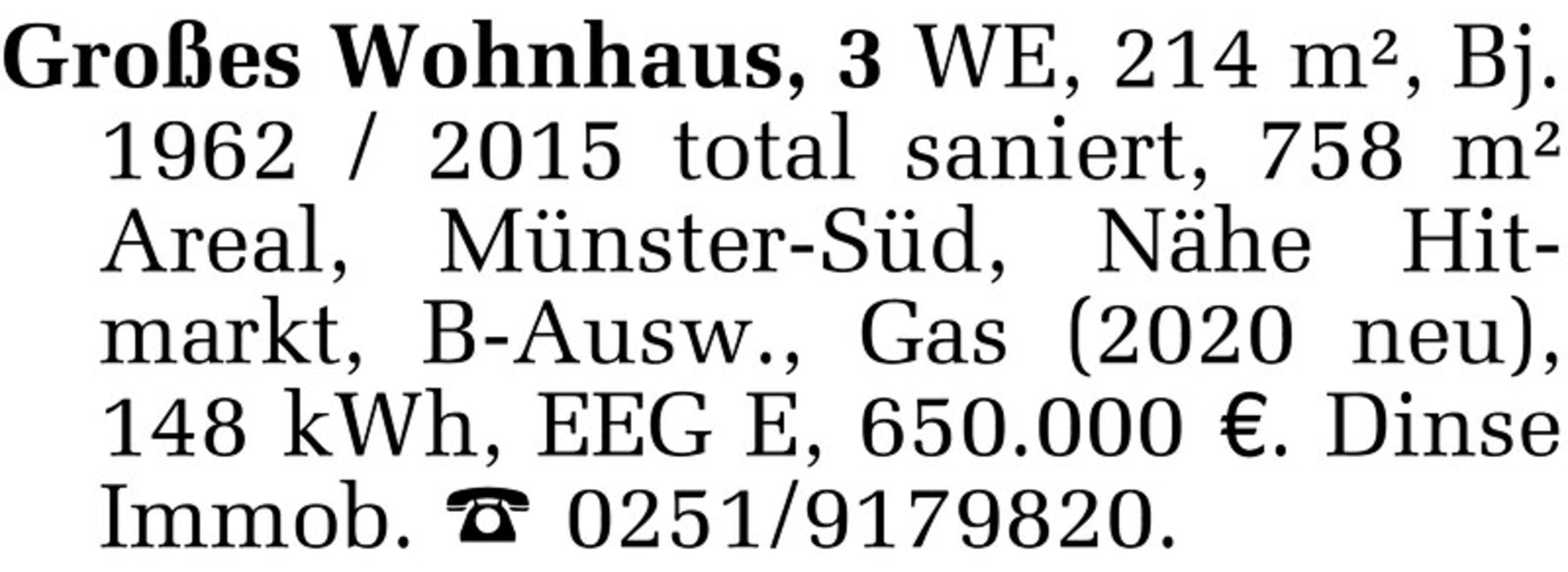 Großes Wohnhaus, 3 WE, 214 m², Bj. 1962 / 2015 ...