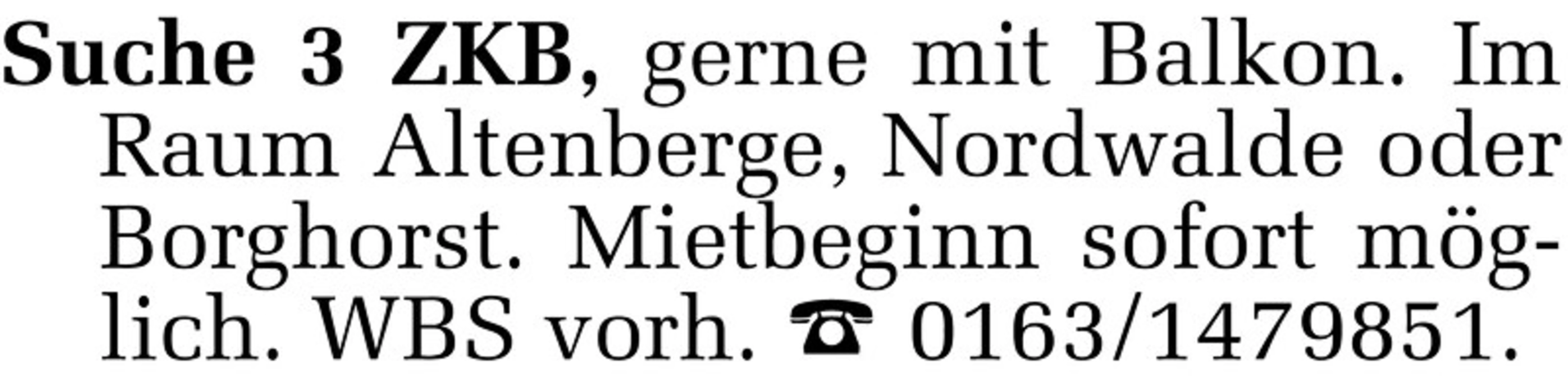 Suche 3 ZKB, gerne mit Balkon. Im Raum Altenberge, ...