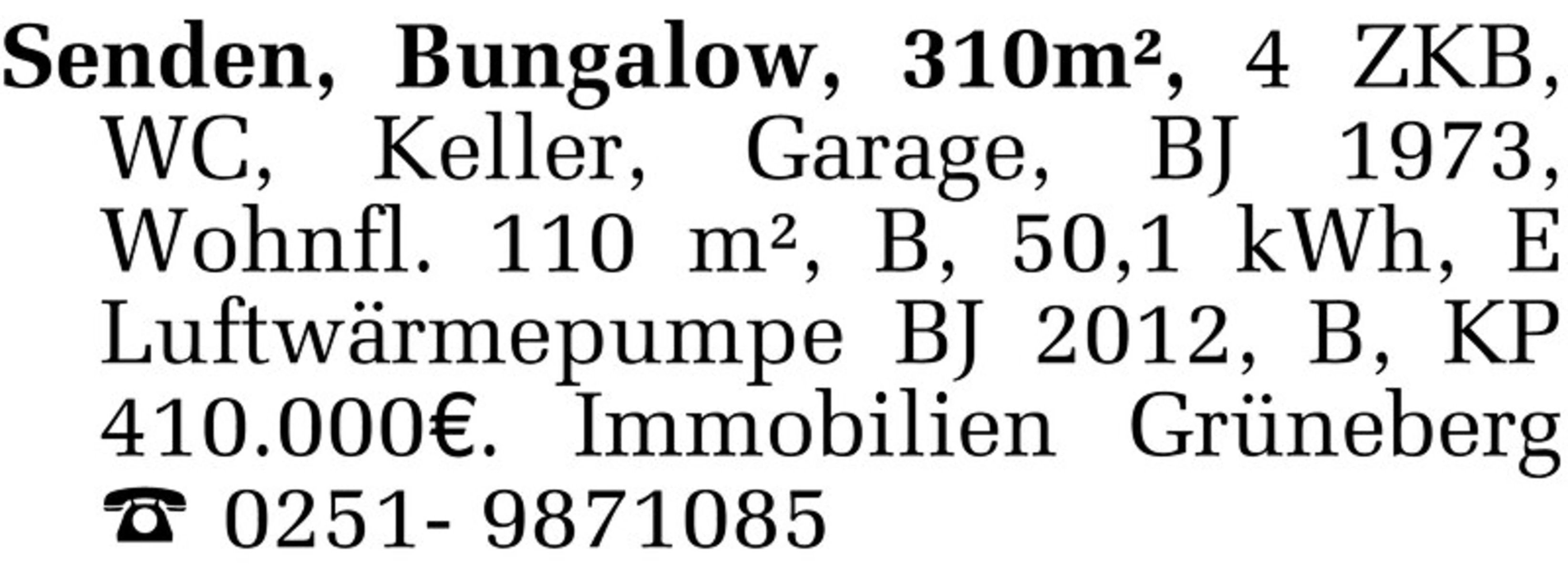 Senden, Bungalow, 310m², 4 ZKB, WC, Keller, Garage ...