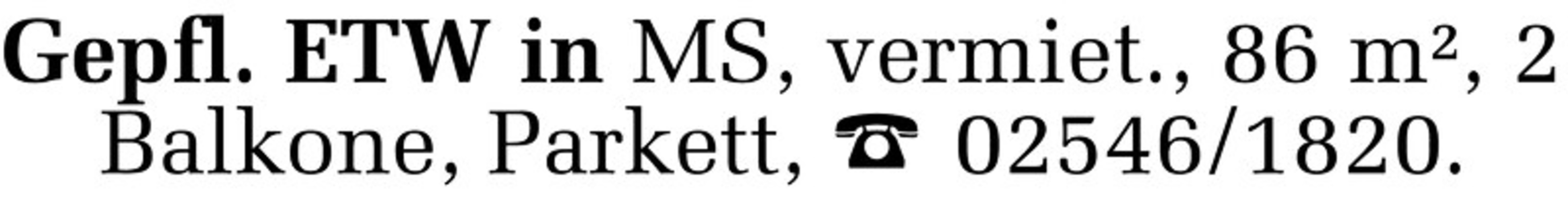 Gepfl. ETW in MS, vermiet., 86 m², 2 Balkone, ...