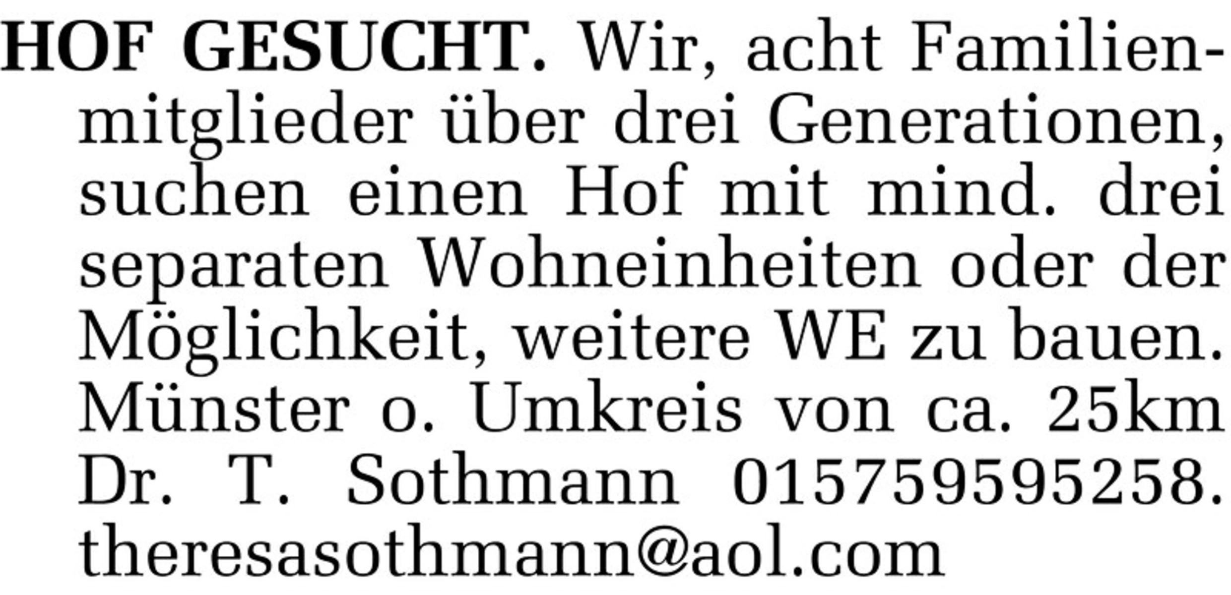 HOF GESUCHT. Wir, acht Familien- mitglieder über ...